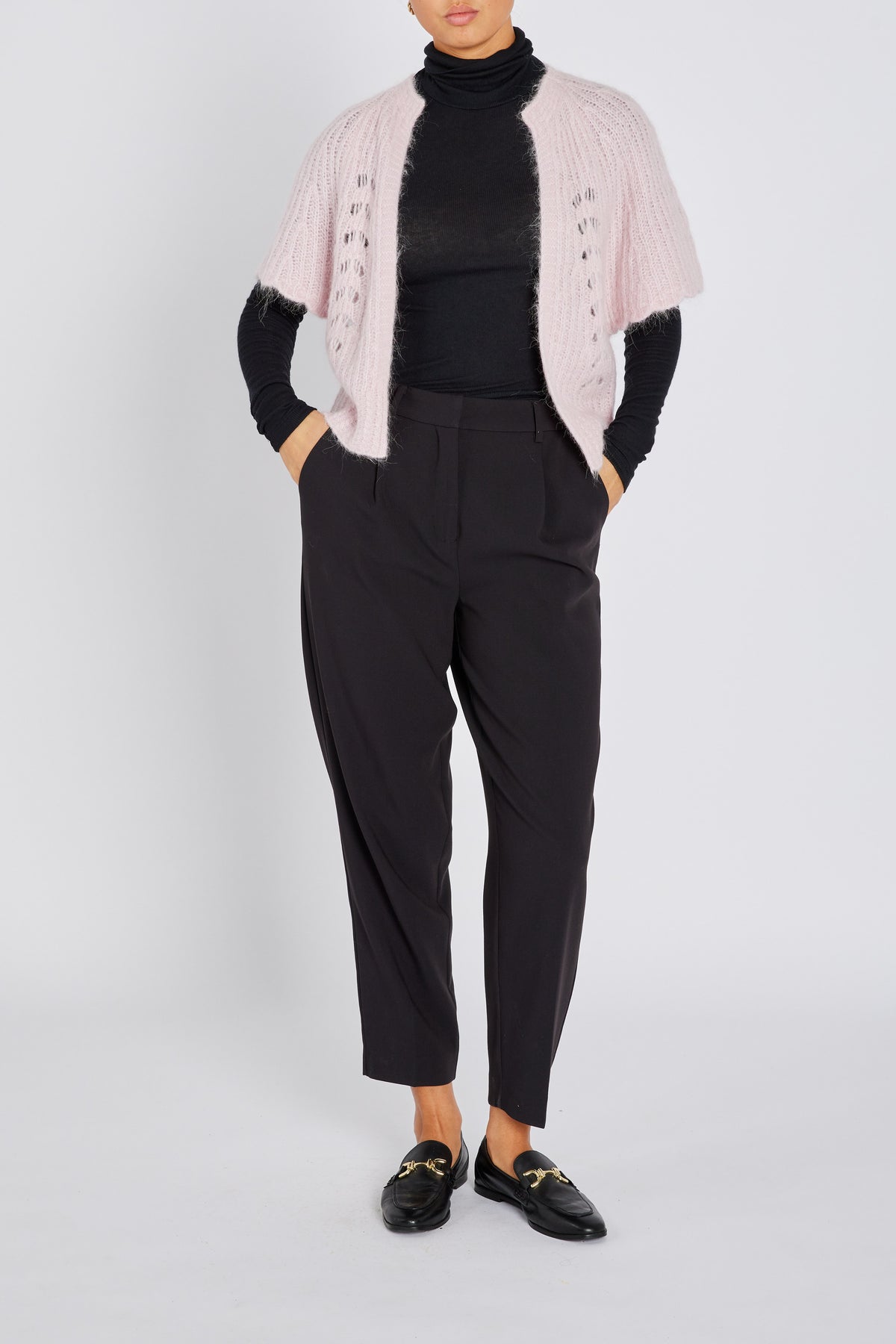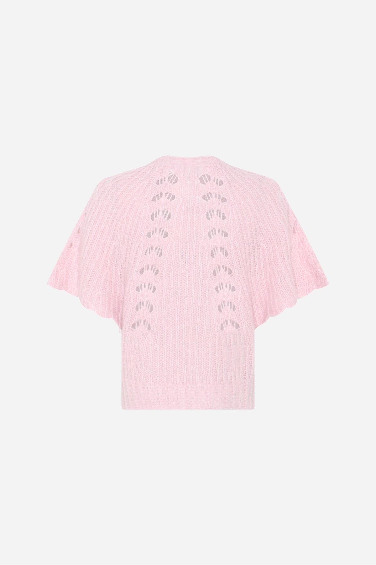 FluffyBBAminka knit is a light cardigan with short sleeves, openwork pattern and wavy edges. A modern, airy piece that adds femininity to the wardrobe.