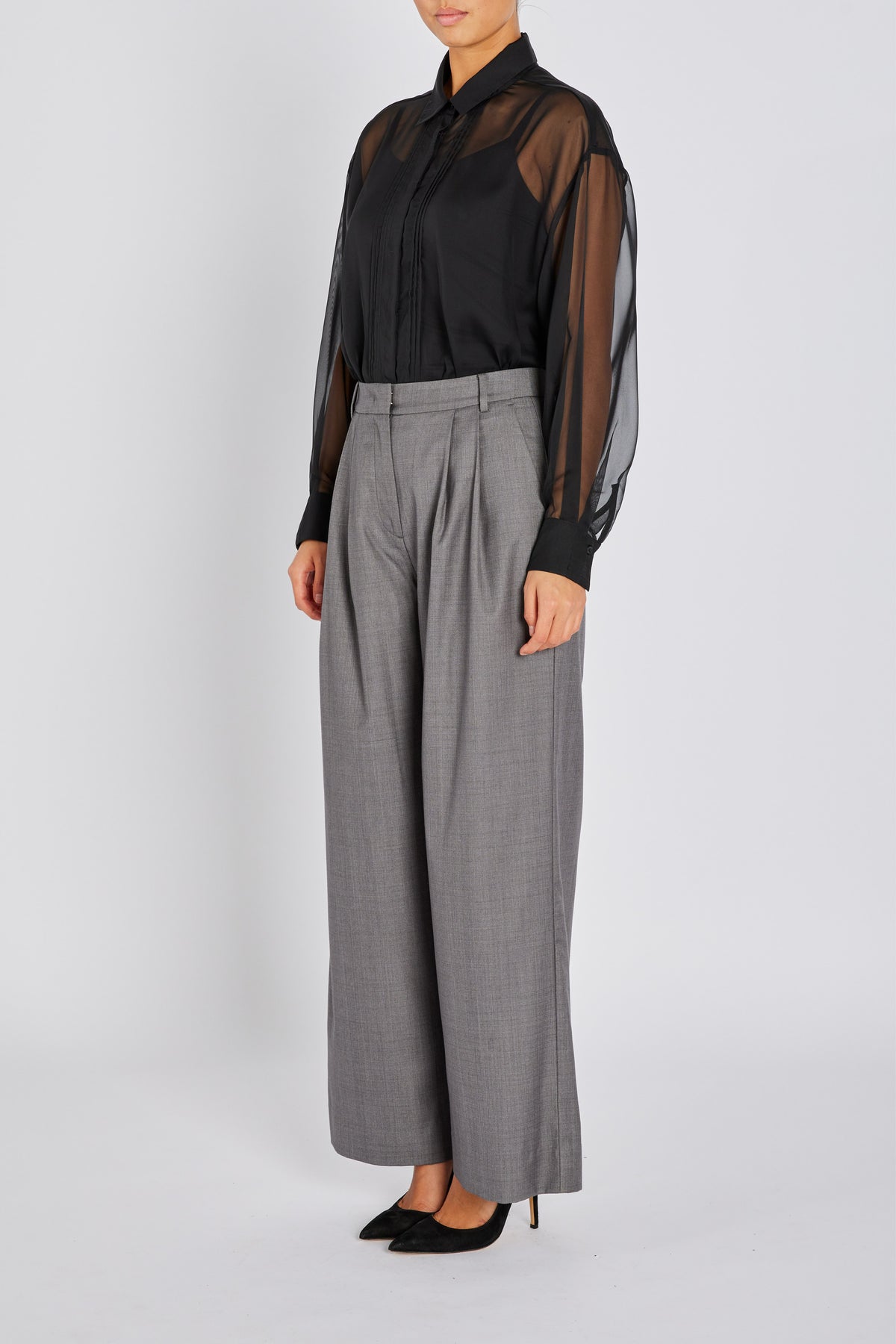 CoakumBBLouas shirt is a sheer black shirt with a classic collar and vertical front detailing. Its lightweight design creates a modern, sophisticated look, perfect for both day and evening wear.