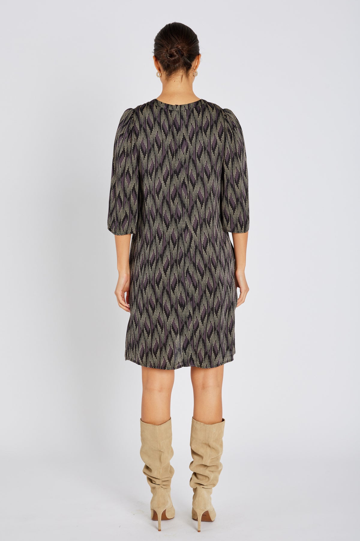 Style it with boots and a leather jacket for a raw everyday look, or with high heels and jewelry for festive occasions. A perfect dress for both day and evening.