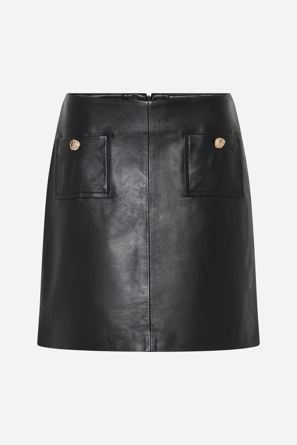 GentianBBShort Leather skirt is a modern mini skirt in a leather look that blends edge with timeless elegance. Its clean silhouette makes it a versatile piece for many occasions.