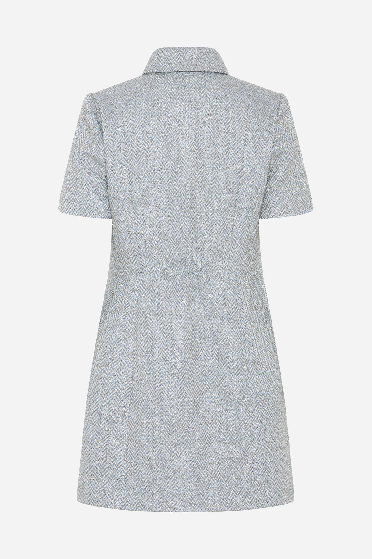ConeBBZendia dress is a short style with a regular fit, short sleeves, and an elegant herringbone structure with a signature Bruuns Bazaar button detail.