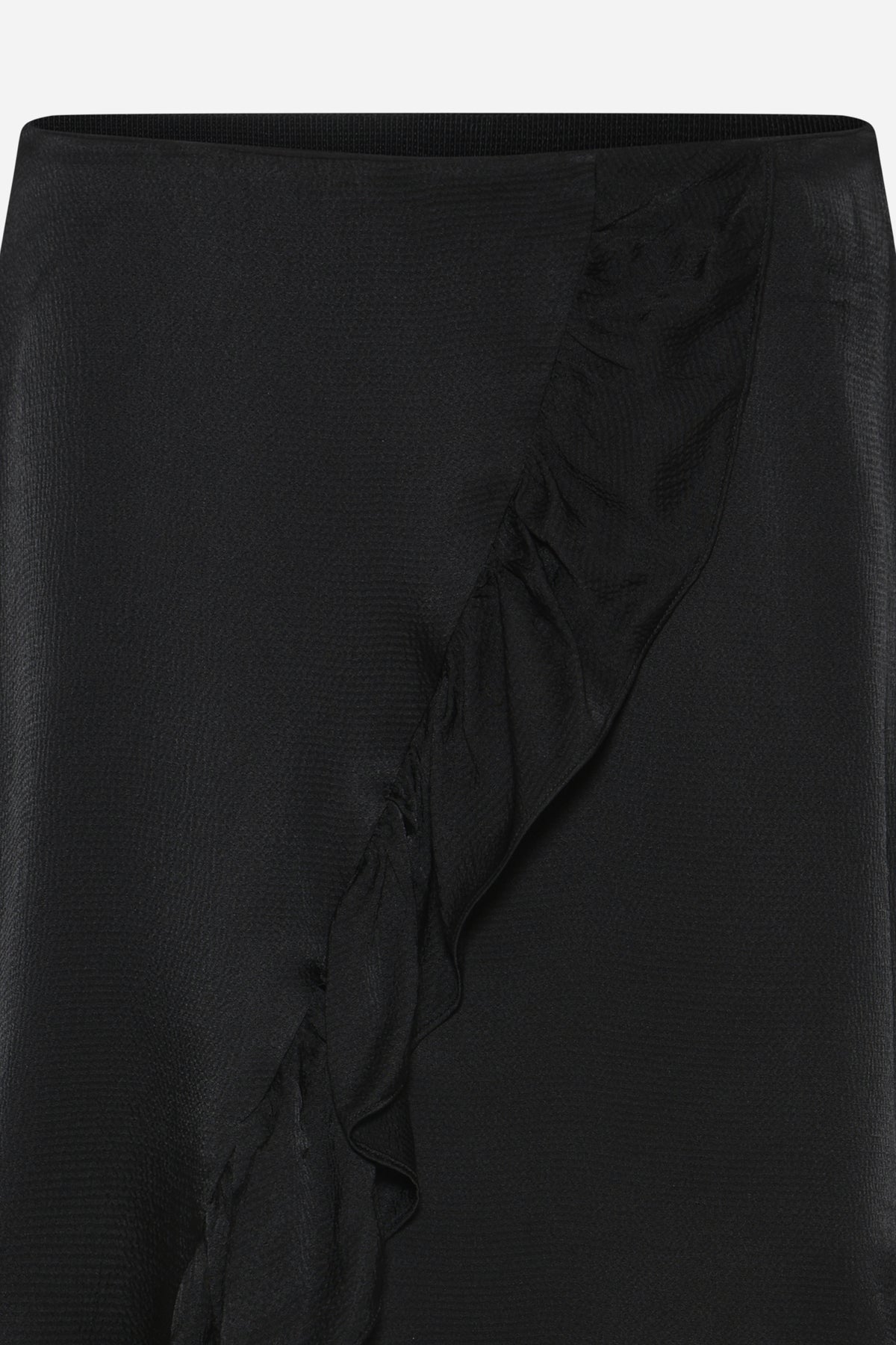 ArfajBBTuuli skirt is an elegant mini skirt with an asymmetric ruffle detail that adds a feminine and sophisticated touch. The simple silhouette makes it versatile for both everyday and festive looks.
