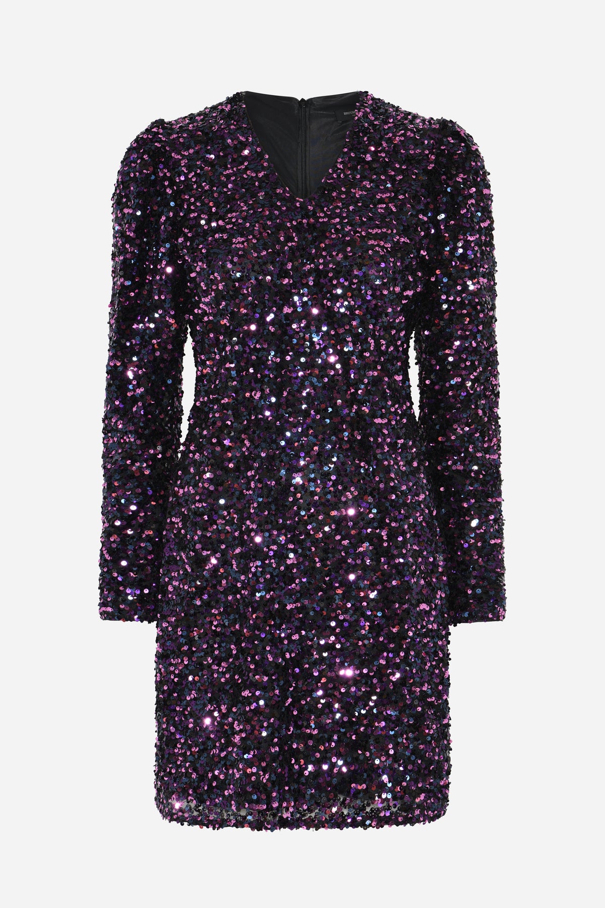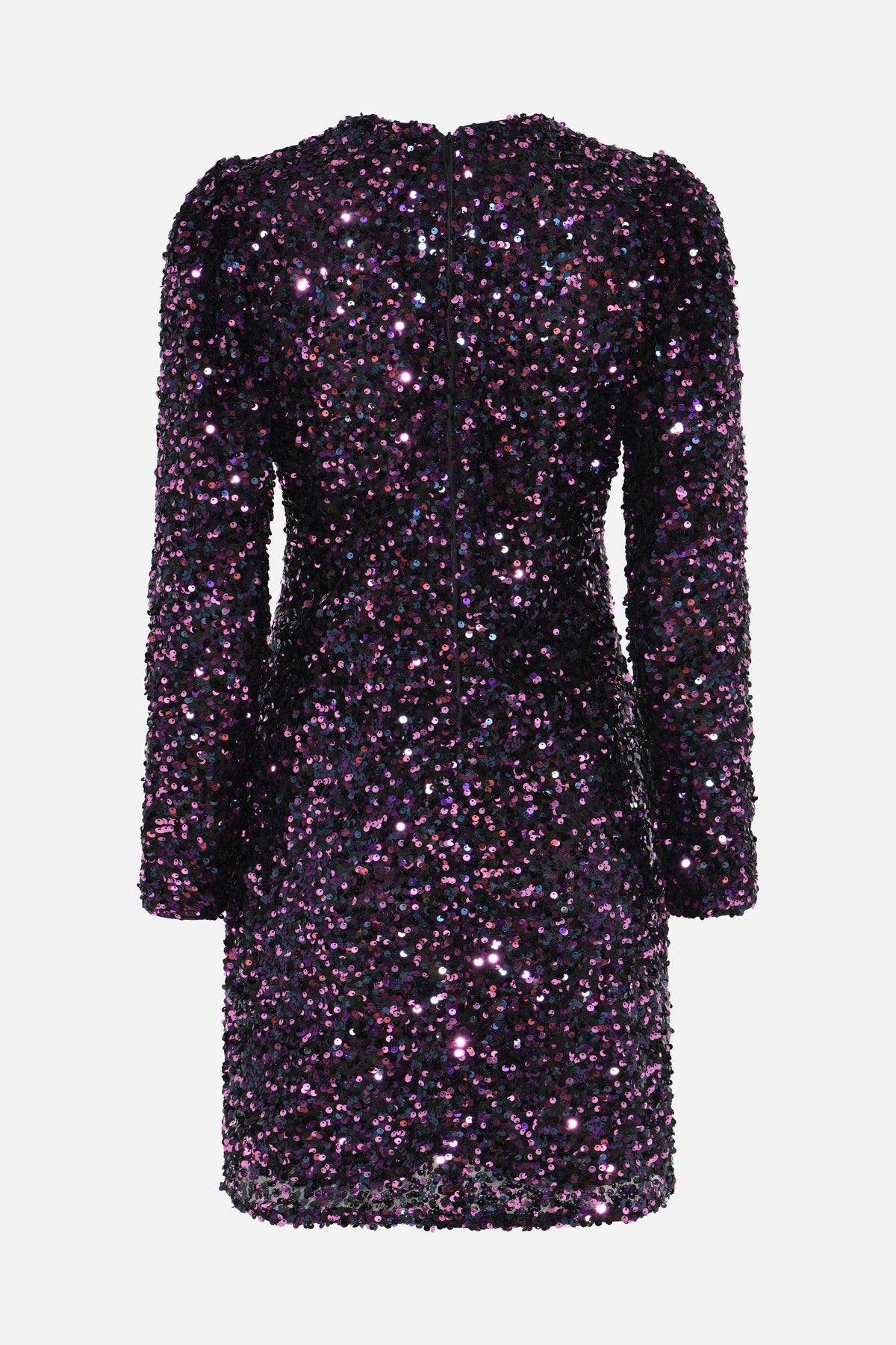 AureaBBMaggies dress is a short dress with long sleeves, a fitted silhouette, and full sequin embroidery. A glamorous design that delivers a striking party look with sparkling effect.