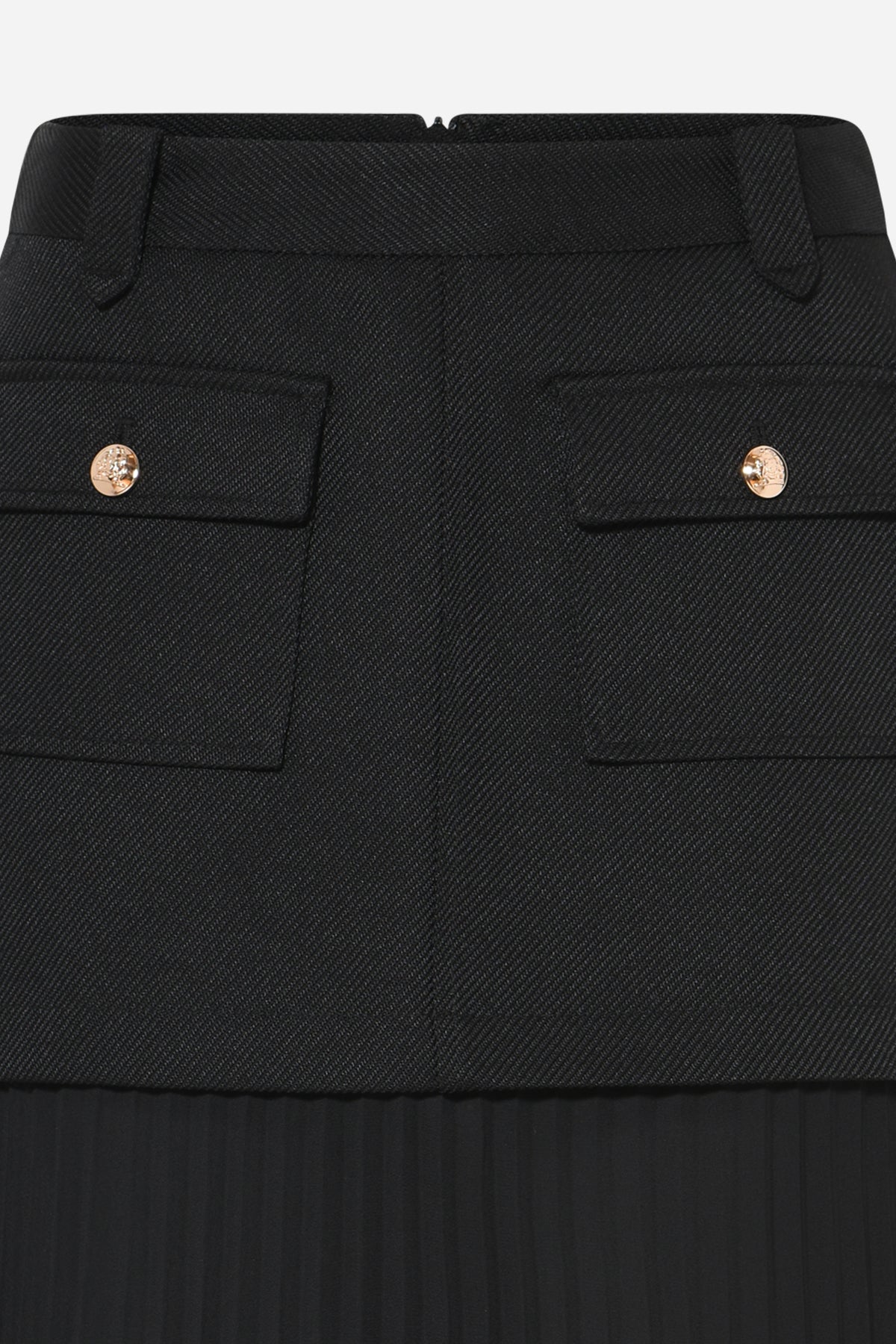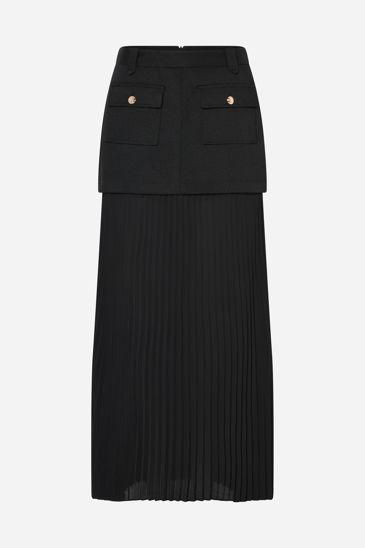 - High-waisted fit - Front pockets with button details - Combination of structured and pleated design - Elegant midi length