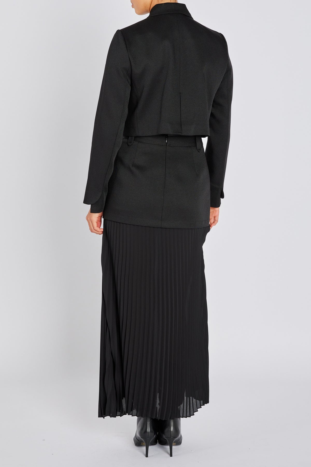The CalcareaBBShennia skirt is an elegant and modern piece that combines a classic structured top with pockets and button details and a feminine pleated lower part. The high-waisted silhouette creates a sophisticated expression, while the pleats add movement and lightness. Perfect for both office wear and festive occasions, depending on how you style it.