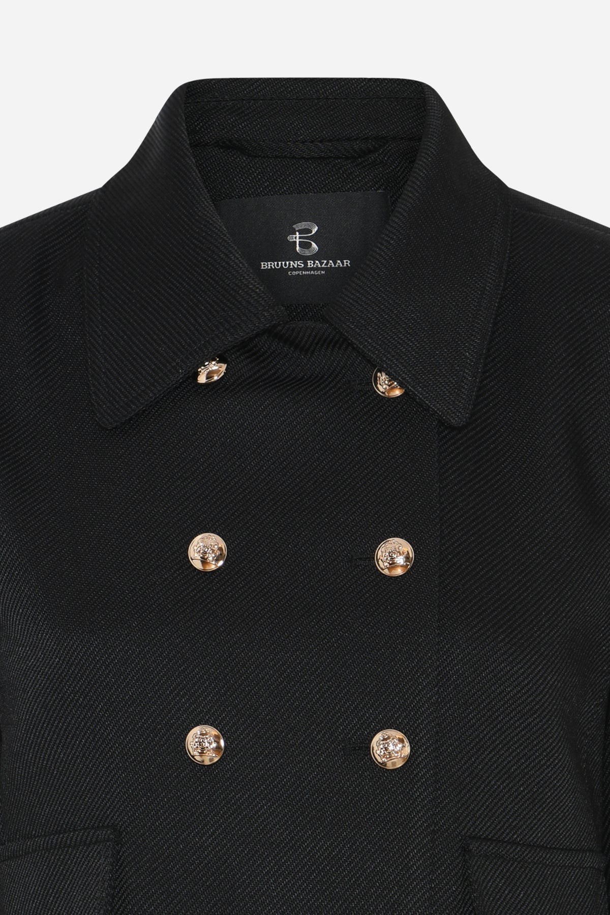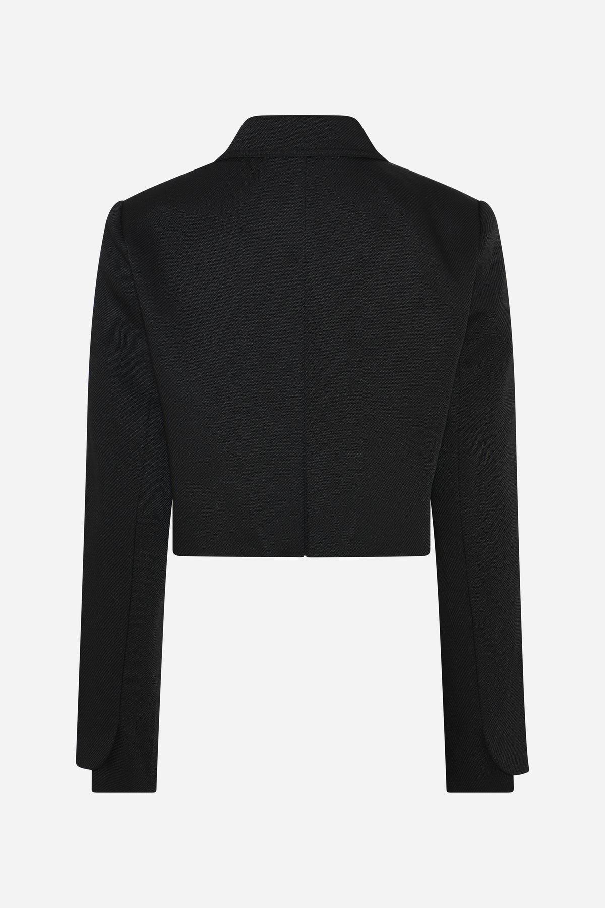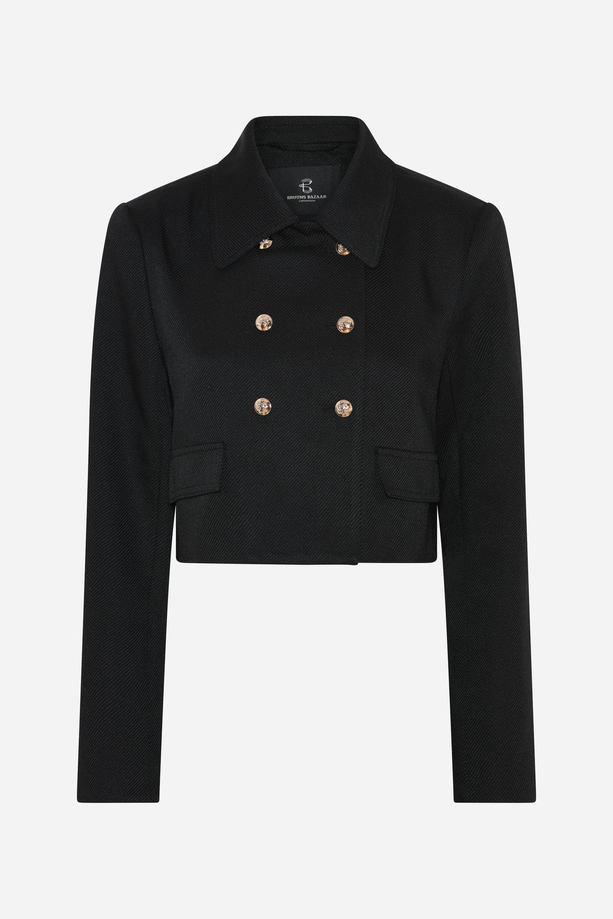 - Cropped length - Double-breasted design - Golden button details - Sharp tailored fit