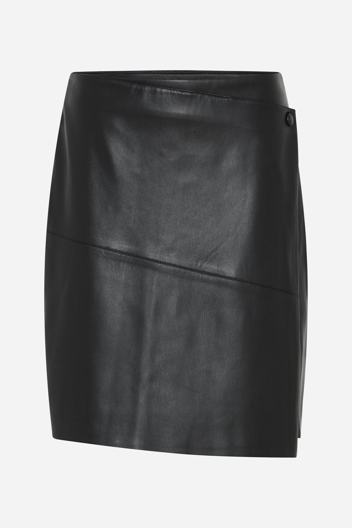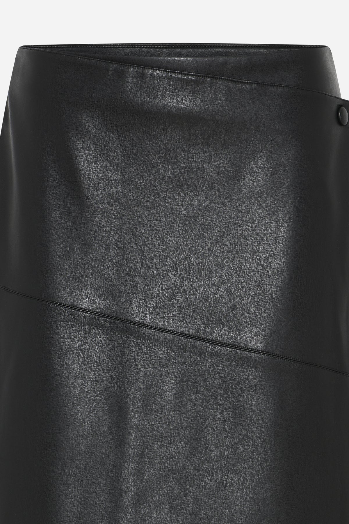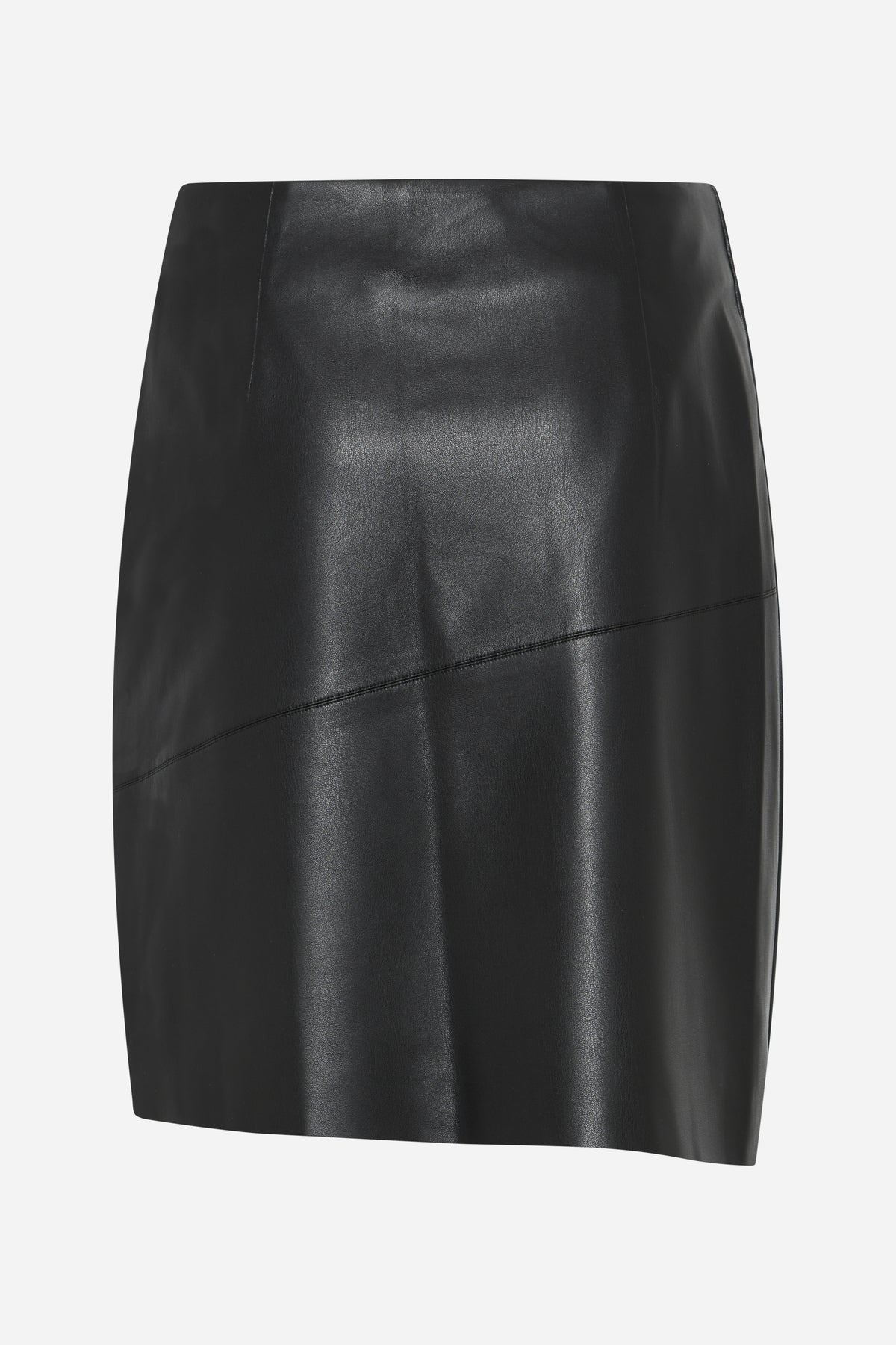 Stylish knee-length skirt in vegan leather. The skirt has an elegant a-shape and can be styled with a knit for an everyday look and a blouse for festive events.