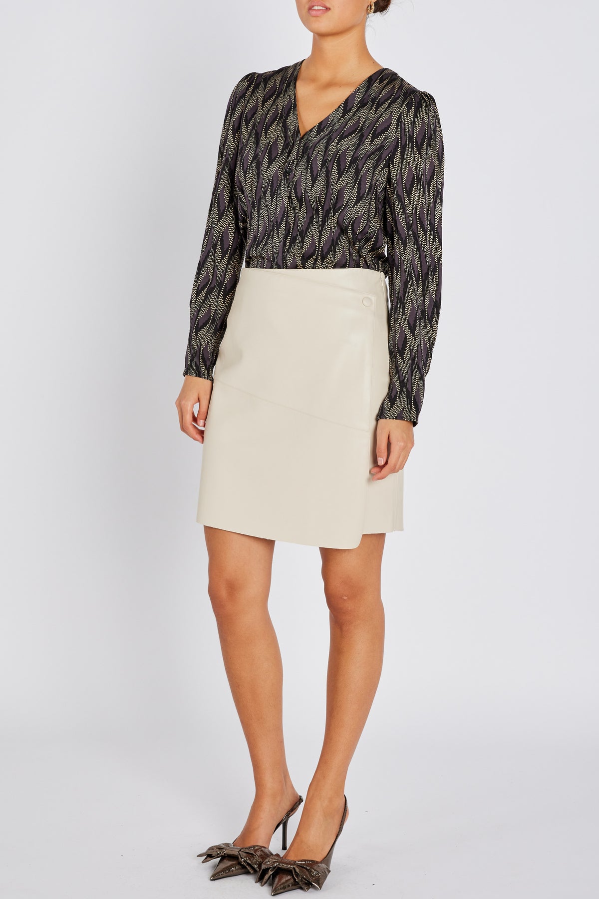 Stylish knee-length skirt in vegan leather. The skirt has an elegant a-shape and can be styled with a knit for an everyday look and a blouse for festive events.